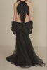A piece of art. Designed in a luxe silk organza, this gown featuring daring front cutouts created by an exaggerated bow detail.